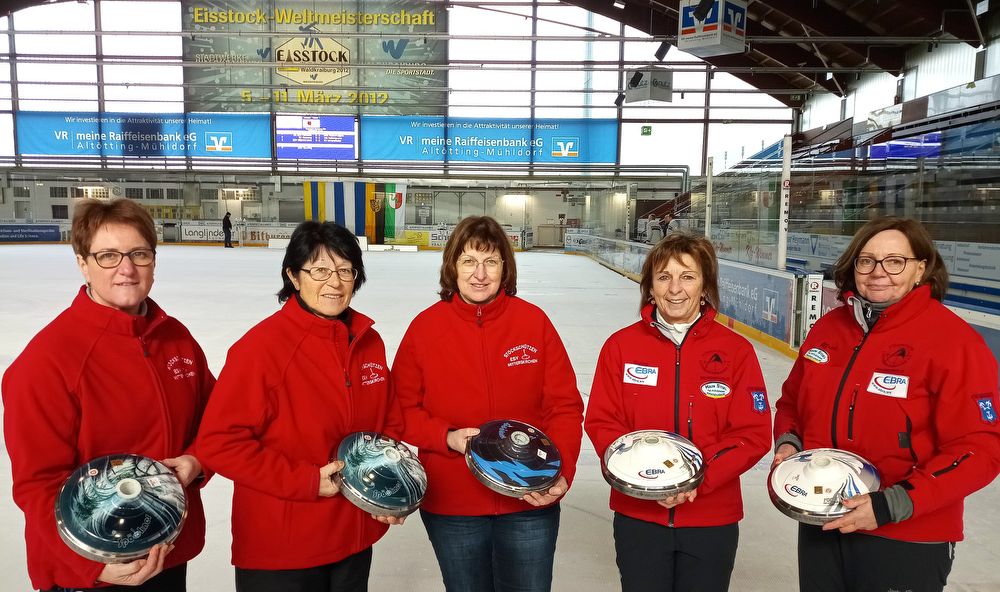 Nach drei klaren Niederlagen zum Auftakt gegen den SC Gattering 1:12, ASV Eggstätt 2:9 und dem VFB Halbergmoos 3:8 war die Vorgabe Aufstieg zur Deutschen Meisterschaft für Marianne und Cornelia Hahn, Renate Schreiner, Elfriede Leitner und Barbara Wimberger so gut wie erledigt. Mit 0:6 Punkten zierte man klar das Tabellenende. Drei Siege in Folge gegen den ESC Berching 7:3, EKC Rottach- Egern 10:1 und dem EC Bad Feilnbach 4:3 brachte die Formation wieder in das Rennen um die sechs Aufstiegsplätze zur Deutschen Entscheidung. Jeder harterkämpfte Punkte zählte nun wieder in der sehr engen Entscheidung und mit einem 5:5 Unentschieden in der Abschlusspartie gegen einen direkten Konkurrenten EV Münchshofen konnte der Aufstieg noch realisiert werden. Am Ende trennten die neun Formationen vom ersten bis zum letzten nur vier Punkte, was die Ausgeglichenheit aller Mannschaften verdeutlichte. Bayerischer Meister wurde der SC Gattering 9:5 Punkte vor dem EV Münchshofen und dem ASV Eggstätt, beide 8:6, dem VFB Halbergmoos sowie dem ESV Mitterskirchen, beide 7:7. Das letzte Ticket zur Deutschen erkämpfte sich der EC Bad Feilnbach vor dem EKC Rottach Egern, beide 6:8 Punkte.