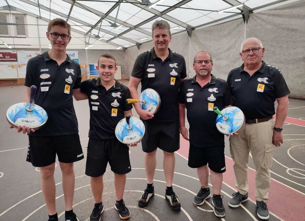 Nach dem Aufstieg im Vorjahr ist somit der „Kreuzeder und Straubinger Formation“ der Durchmarsch in die nächste Liga geglückt. Von den ersten Begegnungen an ging das Kreuzeder Trio mit Xaver, Christoph und Florian zugleich Opa, Vater und Sohn, zusammen mit Marco und Josef Straubinger hochkonzentriert zu Werke, hatten kaum Fehlschüsse und überließen den Gegnern lediglich einen Sieg. Mit insgesamt 37:7 Punkten betrug der Vorsprung zum zweiten Aufsteiger dem TSV Buchbach II 30:14 Punkte glatte sieben Punkte. Auf den weiteren Plätzen landeten 3. TSV Neumarkt St. Veit 28:16, 4. ESV Wang III 25:19, 5. SV Wacker Burghausen 22:22, 6. ESV Waldkraiburg II, 7. SV Hebertsfelden, beide 21:23, 8. FC Egglham 20:22, 9. SSV Zimmern 18:26, 10. ESC Mößling 17:25, 11. EC Frauendorf 14:30, 12. ESV Hackltal 9:35, 13. TUS Mettenheim nicht angetreten. (hm)