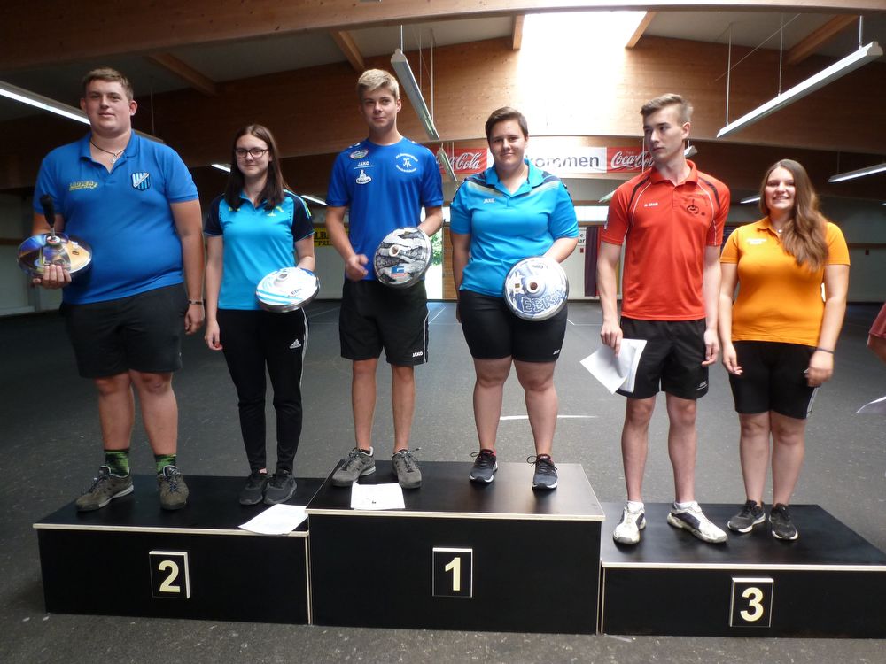 Die Ergebnisse: U 14 männlich: 1. Stefan Eder, DJK-SV Pleiskirchen ,269 Punkte, 2. Max Auerhammer, 244; 3. Mathias Hahn, 232 beide ESV Mitterskirchen ; U 16 weiblich: 1. Sinah Reschberger, EC Lampoding 262; 2. Anna Jellbauer, EC Hauzenberg 241, 3. Selina Steber, SV Daglfing 217 , 4. Stefanie Mayer, TSV Massing, 181, 5. Sandra Thalbauer, DJK-SV Wittibreut, 178 ; U 19 männlich: 1. Stefan Empl, SV Gumpersdorf, 306, 2. Daniel Steber, SV Daglfing, 274, 3. Michael Stelzig, SC Reicheneibach, 261; Weiblich U 19: 1. Katharina Riepl, TSV Bogen, 220; 2. Annalena Preis , FC Untertraubenbach 210; 3. Elisabeth Poidl, TSV Massing, 176; Männlich U 23: 1. Tobias Wiesböck, ESC Aham, 287; 2. Philipp Hier, SSV Rossbach-Wald, 272; 3. Mathias Kohlhuber, EC Gerabach, 253; 8. Michael Hinteraicher , SV Gumpersdorf, 242; Weiblich U 23: 1. Verena Gotzler, Sportfördergruppe Oberhof, 321; 2. Regina Gilg, TSV Kühbach, 285; 3. Tamara Fischer, ESV Johanniskirchen, 216; 4. Agnes Schernhammer, 190, 5. Maria Brandstetter, 179 beide SSV Dietersburg, 6. Maria Empl, SV Gumpersdorf, 175. Die Fahrkarte zur Deutschen Meisterschaft im Mannschaftsspiel der U 19 erkämpfte sich zudem der SC Reicheneibach mit einem 3. Platz bei der Bayerischen Meisterschaft in Pilgramsberg. Im Spiel um Platz drei bezwangen Peter Hans Thomas, Magdalena Hamm, Michael Stelzig und Stefan Sedlmaier die Vertretung des TSV Karpfham mit 29:3, während sich die Spielgemeinschaft Ismaning-Daglfing den Titel erkämpfte mit einem 18:10 Finalsieg über den TSV Mamming. Im Spiel um Platz fünf unterlag der SC Reicheneibach II dem ESC Geisenhausen mit 6:20. Auf dem respektablen achten Platz beendete der SSV Zimmern die Titelkämpfe im Feld der 20 Mannschaften. (gh)