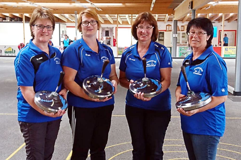 Einzige Bundesligisten im Sommerspielbetrieb 2019 sind die Damen des ESV Mitterskirchen – von links: Barbara Wimberger, Birgit Wagner, Marianne Hahn und Renate Schreiner- sowie der TSV Massing mit Elfriede Leitner, Cornelia Hahn, Jacqueline Ritter, Marie Luise Spielbauer