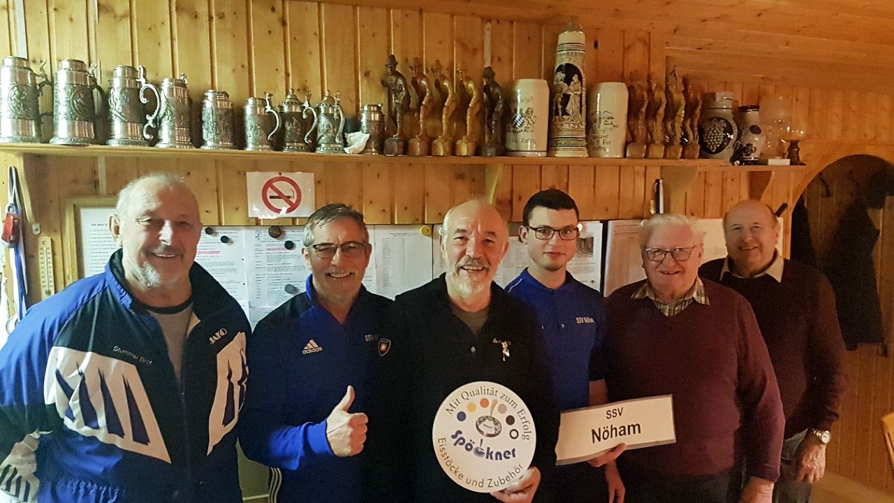 Mit einer sehr starken Vorstellung in der Bezirksoberliga Süd hat sich der SSV Nöham die Bezirksoberligameisterschaft erkämpft. Mit auf dem Bild von links bei der Meisterfeier neben den erfolgreichen Schützen Willi Stopfinger, Franz Bauer, Sigi Schmied, Johannes Kronschnabl, Franz Grabmeier und Rudi Stallhofer.