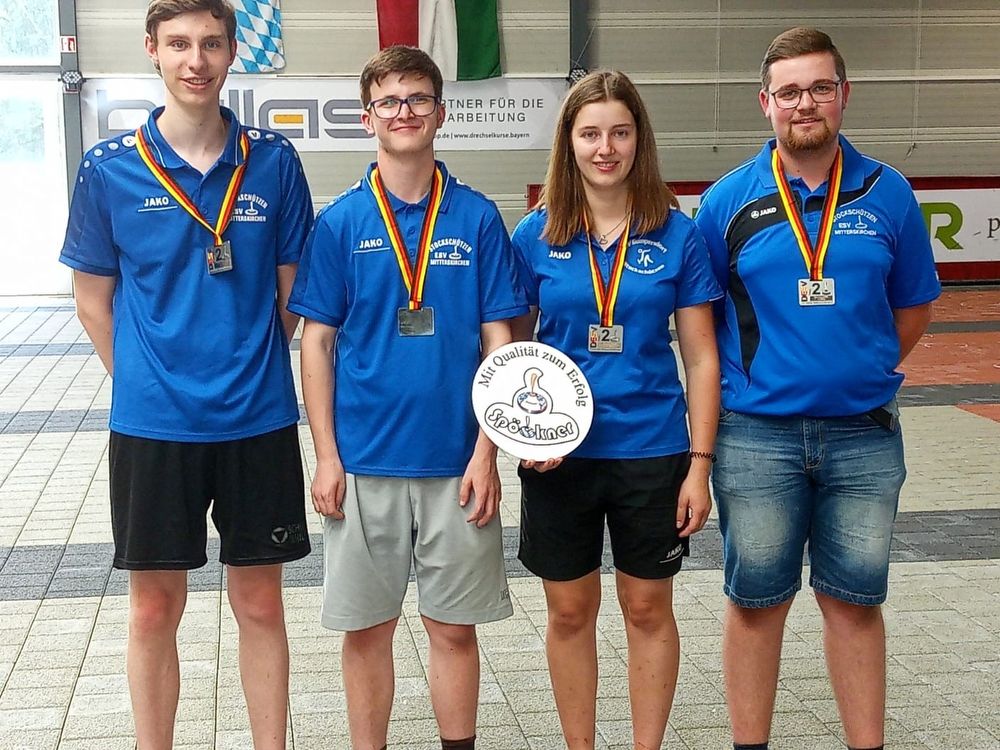 Deutscher Vizemeister in der Jugend U19 wurde der ESV Mitterskirchen mit den Schützen von links Mathias Hahn, Michael Zanklmaier, Anna Hinteraicher und Max Auerhammer.