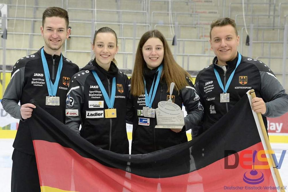 Ihre dritte Silbermedaille erkämpfte sich Anna Hinteraicher im Ziel Team Mixed zusammen mit Alina Mayer und Christian Hein vom EC Gerabach sowie Jonas Huber vom TSV Niederviehbach. Einmal mehr war das Team Österreich das Maß aller Dinge und gewann überlegen mit 314 Punkten vor Deutschland 286, Italien 256, Schweiz 229 und Tschechien 168. Nach dieser dritten Silbermedaille in ihrer ersten U 23 Saison meinte Anna Hinteraicher im Gespräch mit der Heimatsportredaktion, dass sie zufrieden ist, allen Goldmedaillengewinnern die Titel und Erfolge vergönne. Dreimal Silber sei grundsätzlich eine großartige Sache, aber zumindest einmal Gold hätte sie gerne im Reisgepäck gehabt. Besonders Ärgerlich der winzige zwei Punkte-Rückstand im Zielschießen Team. (hm)