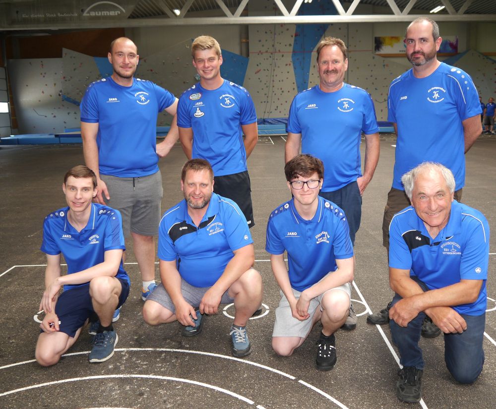 Haben gute Möglichkeiten zum Aufstieg in die Oberliga: der SV Gumpersdorf hinten von links mit Alexander Eder, Stefan Empl, Martin Spielbauer und Michael Bruckmaier sowie der ESV Mitterskirchen II mit Mathias Hahn, Reinhard Lazarus, Michael Zanklmaier und Edwin Rothmaier.