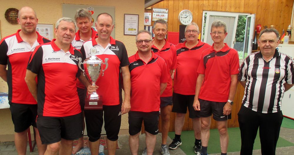 von links der TSV Buchbach mit Josef Brand, Robert Kerbl, Bernhard Gratzl und Stephan Aigner- der SC Reicheneibach mit Franz Eder, Franz Gruber, Wolfgang Stelzig und Heinrich Huber sowie Schiedsrichter Ferdinand Eckert vom SV Wacker Burghausen |