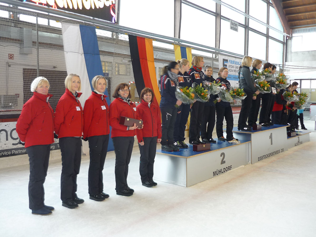 Was für ein nervenaufreibendes Wochenende für die Bundesligisten des TSV Massing und des ESV Mitterskirchen. Jubel und Enttäuschung gab es letztendlich im Lager der beiden Teams. In einem hochdramatischen Finale schafften die Damen des TSV Massing die Teilnahme zur deutschen Meisterschaft, während der ESV Mitterskirchen regelrecht mit dem allerletzten Schuss den Klassenerhalt verspielte. Mit einer absoluten Klasseleistung bestätigten Jacqueline, Marie Luise und Andrea Ritter sowie Elfriede Leitner und Conny Hahn ihren starken Auftritt aus der Vorrunde auch bei der Entscheidung in der Halle von Waldkraiburg. Sieben Siege am ersten Tag gegen den EC Frauendorf 21:3, FC Neunburg 16:10, WSV Eppenschlag 33:5, FC Untertraubenbach 14:10, Neumühler EG 15:13, VFB Halbergmoos 21:3, ESV Mitterskirchen 18:12 und FC Katzbach 18:12 ließ das Punktekonto auf 30:10 Zähler anwachsen und Rang drei. Lediglich gegen den EC Fischbachau 8:18 und gegen den TSV Kühbach 6:18 konnte der Gegner punkten. Mit einem 19:7 über den ESG Füssen und einem 22:8 gegen den EC Haslangkreit wurde am zweiten Tag der dritte Platz gefestigt. Verloren wurde die Partie gegen den EC Schachten Auerbach mit 8:22. Mit einer 13:17 Niederlage in den entscheidenden Bahnenspielen gegen den EC Fischbachau ging es eine Bahn tiefer gegen den FC Penzing. Nach einem hochdramatischen 11:11 konnte der Abstieg eine Bahn tiefer verhindert werden und die Teilnahme an der Deutschen Meisterschaft war perfekt. Zwei Niederlagen in den bedeutungslosen Abschlussbegegnungen gegen den EC Fischbachau 13:17 und SV Mehring 3:20 bedeutete den fünften und letzten Aufstiegsplatz zur deutschen Meisterschaft hinter dem TSV Kühbach, TSV Peiting, EC Fischbachau und dem SV Mehring.
