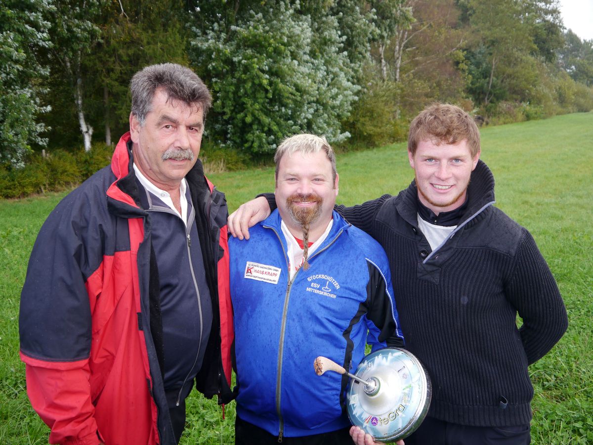 | Dreimal Edelmetall bei der bayerischen im Weitschießen: für Hermann List, Stefan Reichenberger und Thomas Schmuderer. ( von links) |