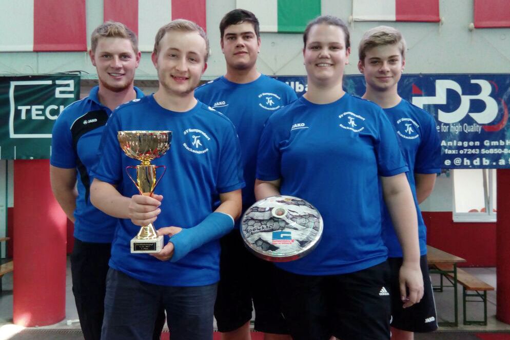 Sieger beim Ländervergleich der U 23: die Spielgemeinschaft Gumpersdorf-Mitterskirchen mit Thomas Schmuderer, Michael Hinteraicher, Markus, Maria und Stefan Empl (von links).