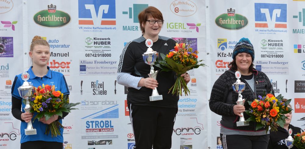 Bayerische Meisterin bei den Damen: Birgit Wagner vom ESV Mitterskirchen (Bildmitte) links Johanna Wagner, rechts Karin Mußner.