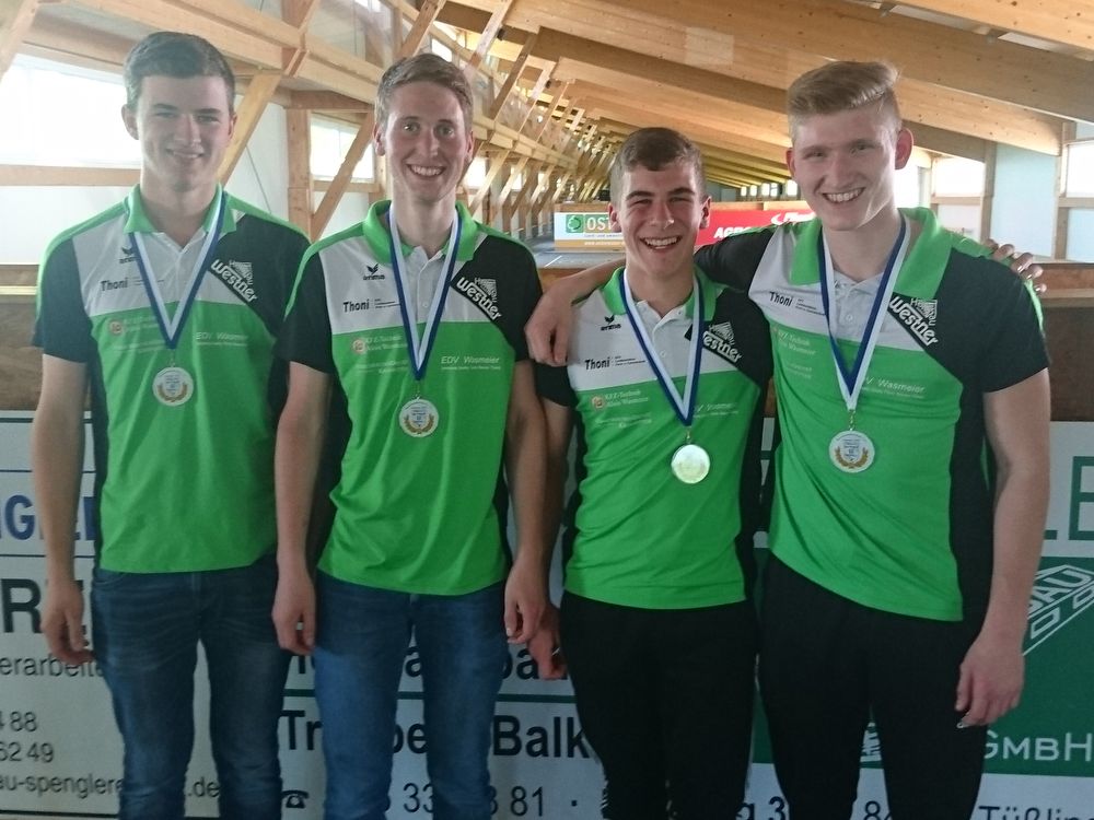 Eine weitere starke Nummer präsentierte der Stockschützennachwuchs des SSV Zimmern bei der Bezirksentscheidung in der Halle von Feldkirchen. In einem wahren Krimi jubelte am Ende das U 19 Team mit Daniel Blümlhuber, Andreas Ebenhofer, Lukas Brunwieser und Simon Huber über den Titel und den Aufstieg zur Bayerischen Meisterschaft am 16. Juni in Pilgramsberg. Zusammen mit dem EC Feldkirchen und dem SC Reicheneibach lieferte sie sich bis zu den letzten Schüssen einen packenden Dreikampf. Bei Punktgleichheit von jeweils 10:4 Zählern entschied somit die Stocknote über den Tagessieg. Den letzten Platz auf dem Podest erkämpfte sich der SC Reicheneibach II mit Magdalena Hamm, Vincent Steckermaier, Andreas Stelzig und Michael Hamann vor der „ersten Eibecke Vertretung“ sowie dem SSC Untergrasensee. Das Ergebnis: 1. SSV Zimmern, Note 2,43, 2. EC Feldkirchen Note 1,90, 3. SC Reicheneibach II Note 1,60, alle 10:4 Punkte 4. SC Reicheneibach 8:6, 5. SSC Untergrasensee 7:7, 6. EC Lampoding 6:8, 7. SV Kay 4:10, 8. TSV Taufkirchen 1:13 (gh)