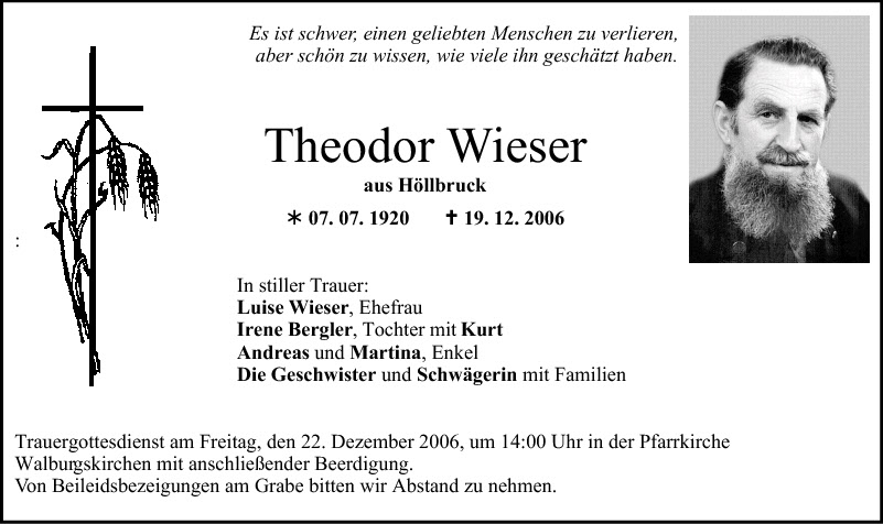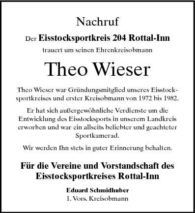 Der Eisstocksportkreis Rottal Inn trauert um seinen Ehren-Kreisobmann Theo Wieser!